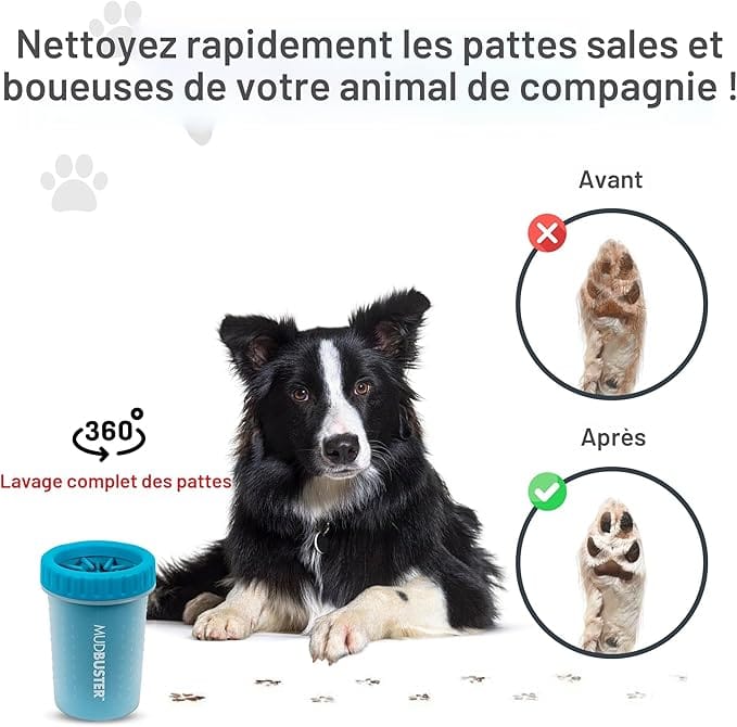 - Le nettoyeur MudBuster est un gobelet protable pour nettoyer les pattes de votre chien!