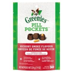 - Contient un (1) lot de 30 comprimés Greenies de 224 g de friandises pour chiens sous forme de capsules à la saveur de fumée de caryer; fait avec des ingrédients naturels et des oligo-éléments