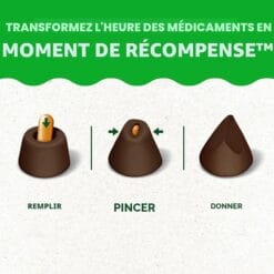 - Ces friandises pour chien sont faciles à utiliser : déposez le comprimé de médicament à l’intérieur de la poche, pincez-la fermée et donnez à votre meilleur ami une collation savoureuse
