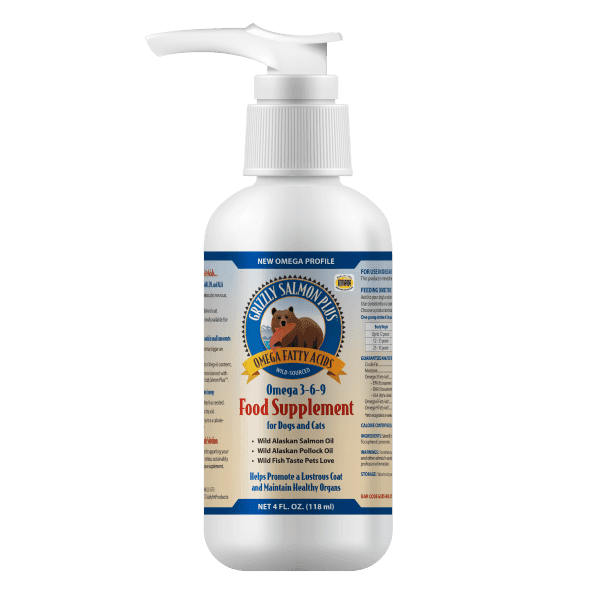 Grizzly Saumon Plus est le supplément oméga-3 à base de poisson le plus durable pour les animaux de compagnie. L’huile de saumon sauvage d’Alaska provenant de nos propres installations en Alaska, mélangée à l’huile de colin sauvage d’Alaska (huile de poisson blanc), permet d’obtenir le profil d’oméga le plus robuste, avec des niveaux élevés de DHA et d’EPA et des niveaux très faibles d’oméga-6, qu’il est important de limiter dans les suppléments. Les oméga-3 contenus dans notre huile de saumon favorisent la santé de la peau et du pelage ainsi que la santé du cœur, des hanches et des articulations, des organes et du système nerveux. Grizzly est le leader du marché des oméga-3 !