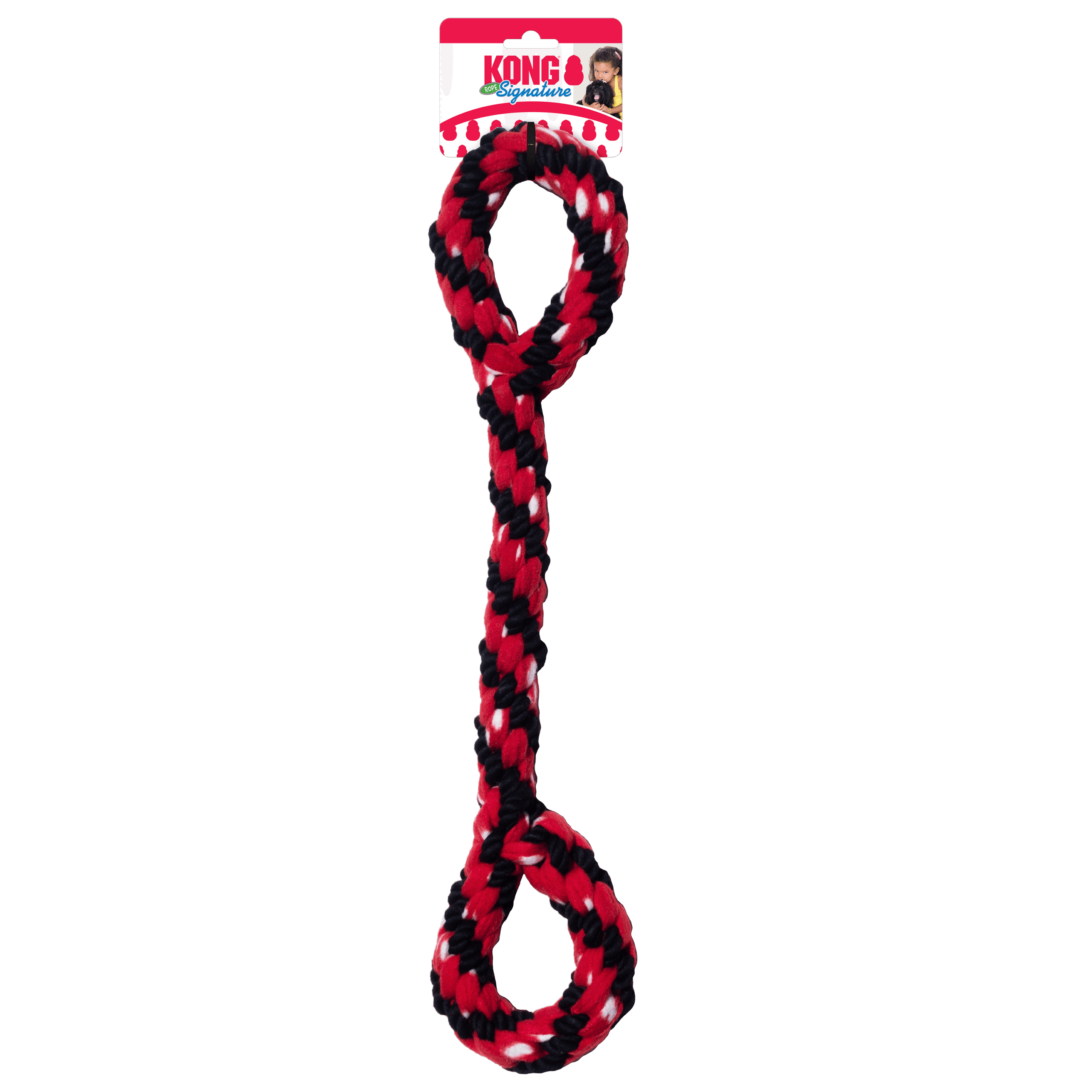 Le jouet KONG Signature Double Tire à la corde Rope, c’est deux fois plus de plaisir pour votre chien. Sa tresse unique est faite de coton et de tissu molletonné pour la plus grande joie de votre chien, ce dernier pouvant en effet l’étirer à volonté sans se faire mal. Fabriqué à partir d’un matériau solide, le jouet récompense encore davantage le comportement naturel de mastication de votre toutou tout en lui nettoyant les dents. Les deux anneaux multiplient les occasions de jeu interactif pour tous les chiens car ils éveillent leurs instincts ludiques et les encouragent à tirer dessus sans se lasser.