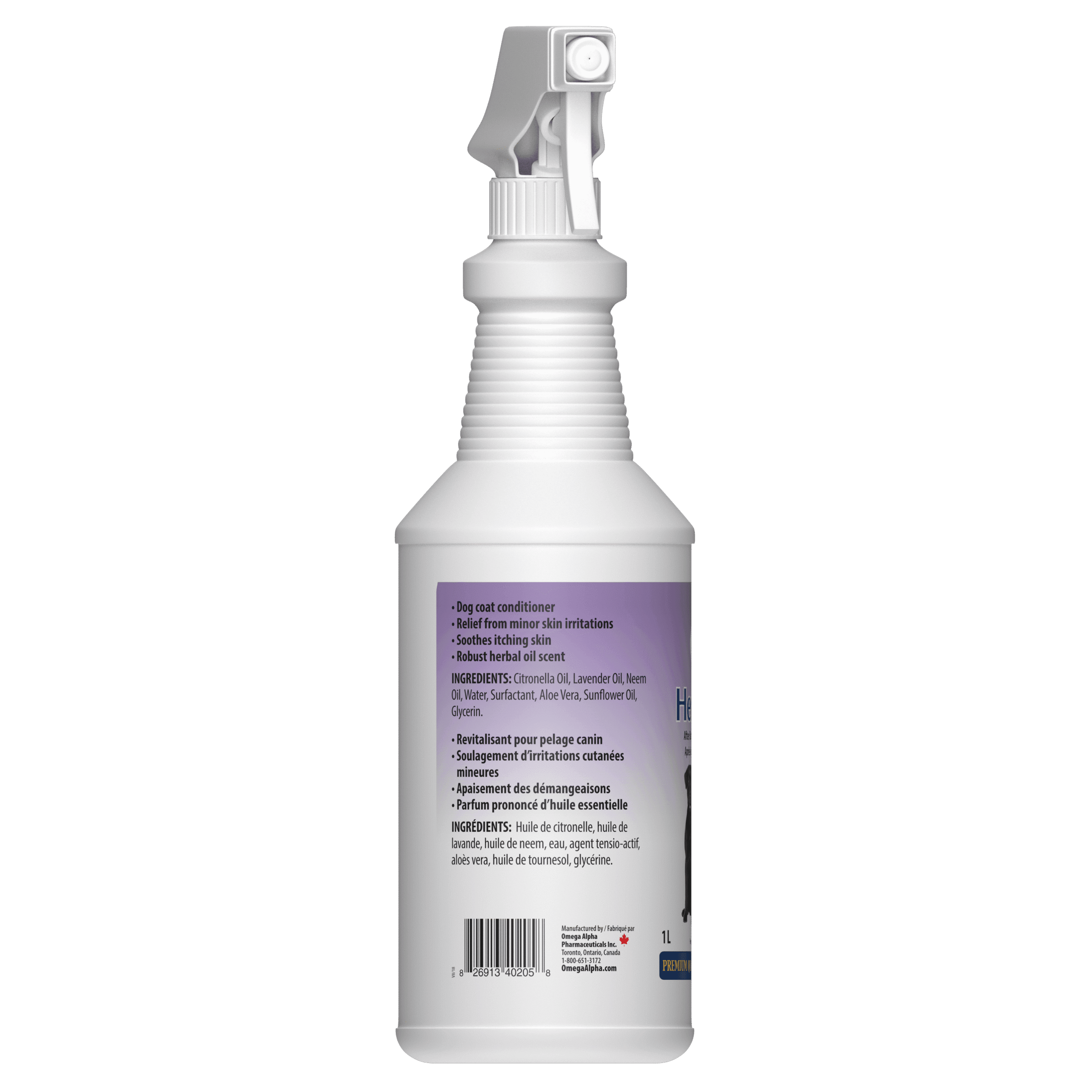 HerbaCoat™ contient un mélange apaisant d’huiles de neem, de citronnelle et de lavande